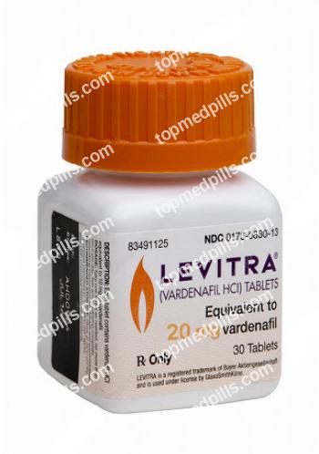Brand Levitra was developed by the pharmaceutical company Bayer/GlaxoSmithKline and uses Vardenafil HCl as main component of the medication. Levitra is an oral drug used to treat erectile dysfunction. Sexual stimulation causes the production and release of nitric oxide from the nerves endings of the cavernous bodies of the penis hereby activating enzyme guanylate cyclase. Guanylate cyclase in its turn is responsible for production of cyclic guanosine monophosphate (cGMP). The cGMP causes widening and relaxation of the blood vessels carrying blood to the penis. Levitra prevents phosphodiesterase-5 enzyme from destroying cGMP and thus helps to support blood flow to the penis.