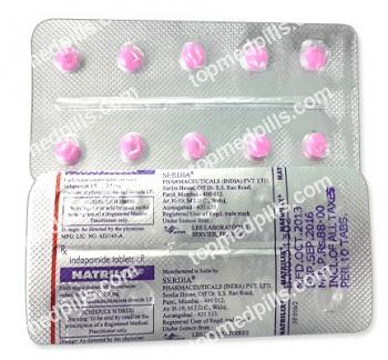 Indapamide is a thiazide-like diuretic which contains an active substance benzamide-sulfonamide-indole (Indapamide). By its pharmacological properties it is similar to thiazide diuretics (changes of Na+ re-absorption in the vertical segment of the loop of Henle). Indapamide increases excretion of Na+, Cl-, K+, and Mg2+ with urine. It is used to treat hypertension either alone or in combination with other high blood pressure medications. Long treatment with Indapamide is required, a therapeutic effect observed after 1-2 weeks of use, maximum is reached in 8-12 weeks and keeps up to 8 weeks.