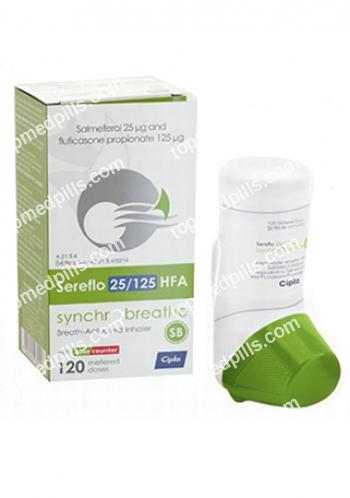 Seroflo Inhaler is applied in treatment of asthma and chronic obstructive pulmonary disease (COPD) associated with chronic bronchitis. It is sold in form of an oral inhaler and contains 2 medicines, fluticasone propionate (Flovent) and salmeterol (Serevent). Fluticasone propionate is a corticosteroid substance which reduces inflammation in the lungs. Salmeterol, a beta2-agonist (LABA), relaxes smooth muscles of bronchi, widens them and has prolonged activity. Mutual work of the two ingredients prevents wheezing and shortness of breath.